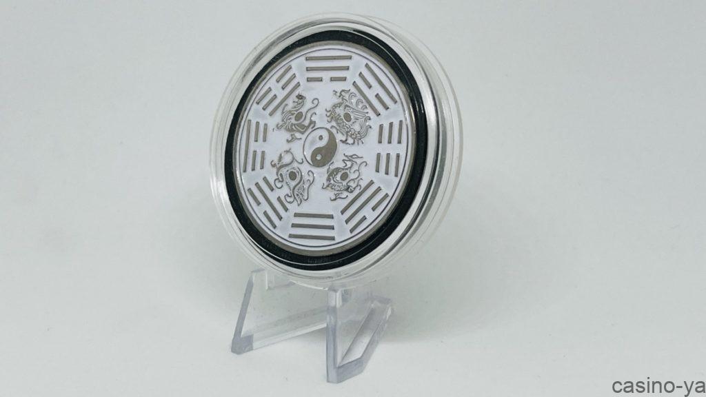 シルバーにレッドで塗りつぶされたカラーリングは、中国文化の特徴的な色使いを表現しており、存在感を引き立てます。太極図は陰陽のバランスと調和を象徴し、それにサソリのデザインが組み合わさることで、独自のエネルギーと神秘性が感じられるデザインとなっています。